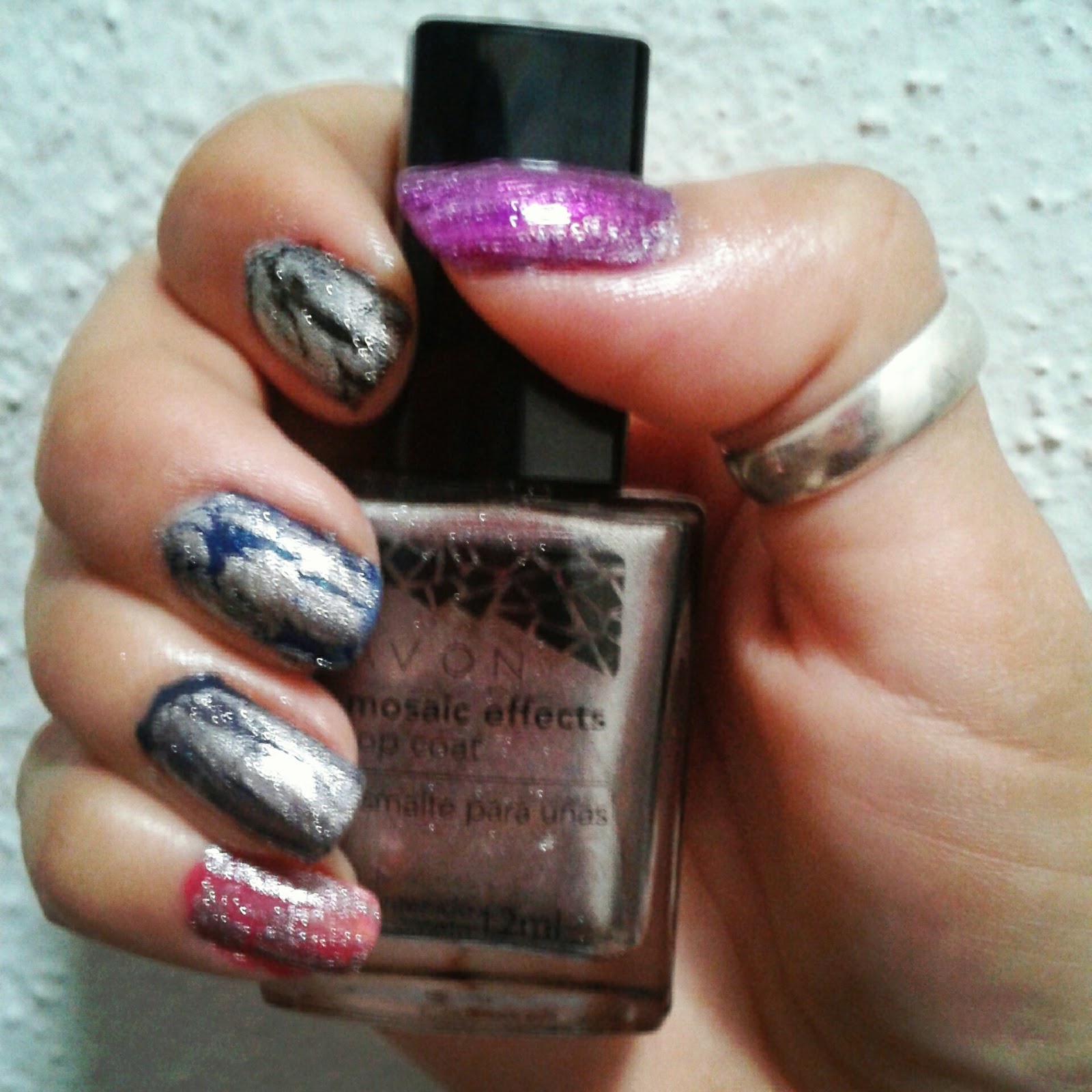 Primero deben aplicar una base de esmalte del colore que guste, yo aquí aplique 5 diferentes uno para cada uña, y ya que seca simplemente aplican una capa de esmalte para craquelado, yo use el de avon y esperan que seque y listo, así queda!